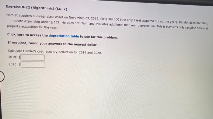 Exercise 8 22 Algorithmic Lo 2 Hamlet Acquires A 7 Year Class Asset On November 23 2019 For Homeworklib